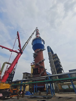 山西明源能源集团有限公司年产焦化烟气超低排放脱硫除尘工程1#脱硫塔在业主们的全力支持和公司各部门的努力配合下,于2022年8月18日顺利封顶至80m高。 1#脱硫塔塔高80m,塔体最大直径14.5m,塔体总重400余吨。于5月1日开始业主交付脱硫塔基础后,8月18日完成塔体主体结构(包括塔筒体、内支撑构件、塔外钢爬梯等附件)安装。本项目自开工起面临多家施工单位交叉作业、施工场地狭窄、降雨频繁等诸多客观因素影响,项目部通过抓紧雨天间隙,积极抢工赶工,力保施工连续性,全力达成合同目标。