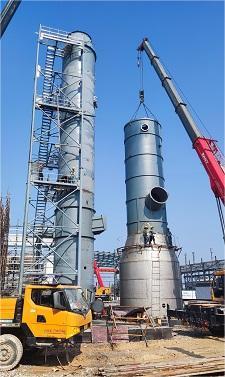 由我司承建的广西中伟南部基地中间品预处理项目一期工程烟气脱硫系统,二级塔及其钢架已顺利封顶,一级塔新做筒体安装完成,正有序进行二级塔的收尾以达到内防腐条件、一级塔利旧段的改造、湿电钢架及壳体等的加工等。项目部及施工人员全体克服当前夏季高温天气、台风频繁等不利条件,调整作业时间,追赶施工进度,实现工程总体目标。