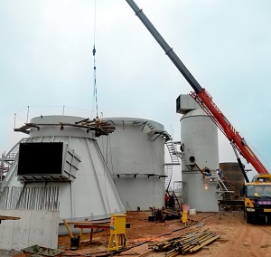 湖南金博碳素股份有限公司石墨化炉烟气超低排放项目,一级脱硫塔准备近日吊装封顶,在完善焊接和平台爬梯后移交防腐,二级60m脱硫湿电烟囱合一塔正在制作组装,烟道和箱罐也正在下料预制。根据业主工期目标,本工程工期短、任务重,项目部不畏困难,周密策划方案,精心组织施工,与业主方通力协作,从材料、劳动力等各方面提供全方位保障,加班加点赶工期,抢进度,确保项目现场有效安全施工,以达到业主的工期目标。
